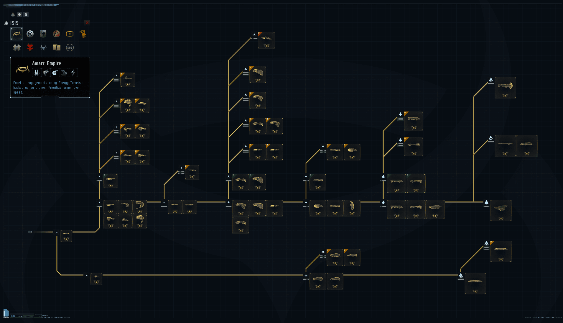 Ещё одно важное изменение замечается сразу после входа в игру. На панели Neocom появилась новая функция, называемая ISIS (по-научному – InterBus Ship Identification System, система идентификации кораблей корпорации InterBus). Это очередной шаг навстречу новым пилотам, которые только начали играть в «Еву». Основное назначение «Айзиса» – помочь новичку разобраться во всём многообразии кораблей и их классов, а также дать возможность отслеживать состояние «прокачки» и готовности к пилотированию того или иного корабля. Весь парк кораблей представлен в виде удобной древовидной структуры. Для опытного капсулира, конечно, в этом нет необходимости, но для начинающих игроков – определённый плюс, поскольку это облегчает восприятие большого количества информации, которую нужно держать в голове. Обучение навыков, классы и предназначения разных кораблей, фракции которым они принадлежат – всё это чётко структурировано и подано в максимально доступной форме.